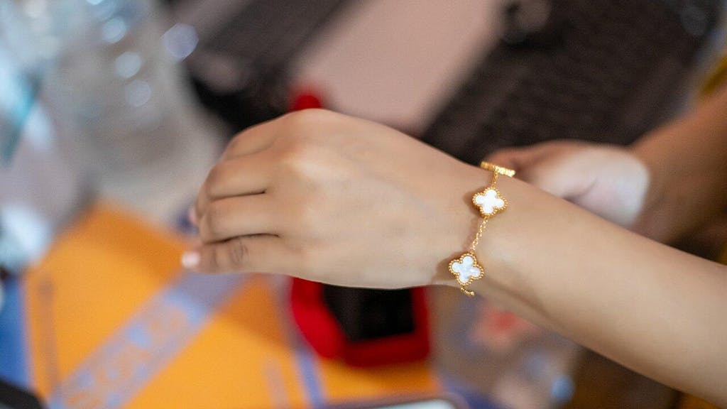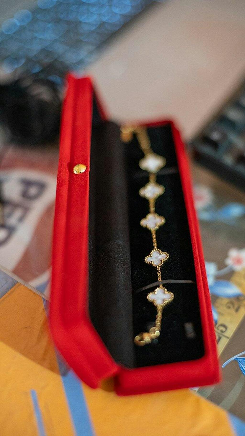Main ne yeh bracelet Naam Official se order kiya aur mujhe bohat pasand aaya. Reality mein aur bhi zyada pyara lagta hai. Golden finish aur white clover design bohat classy feel deta hai.