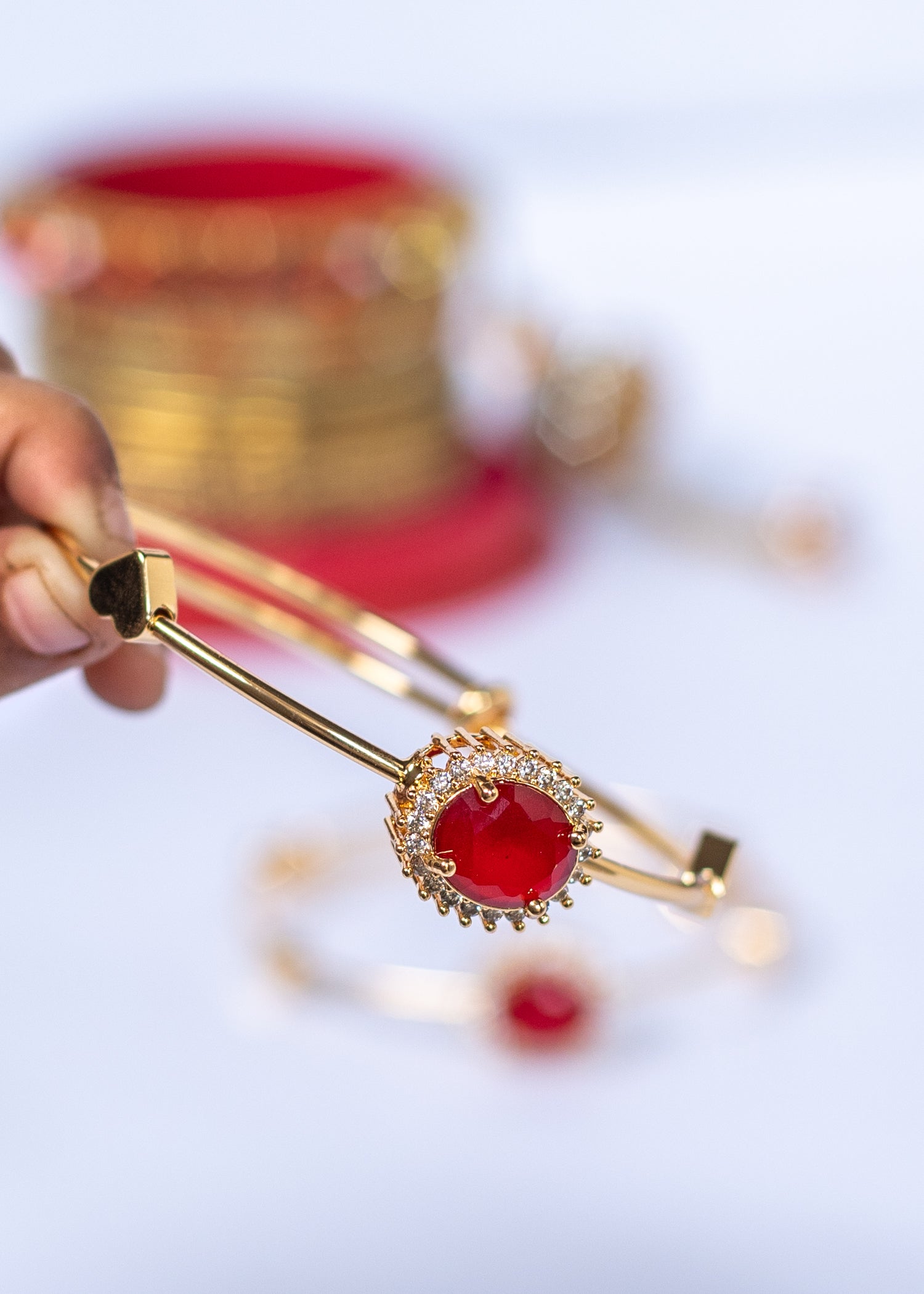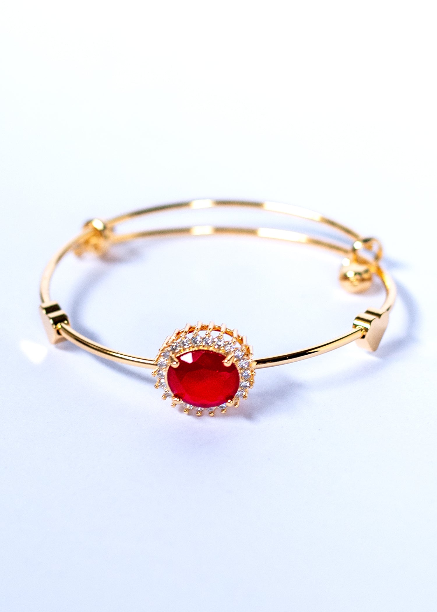 ✔ Shiny gold finish with Red Crystal.