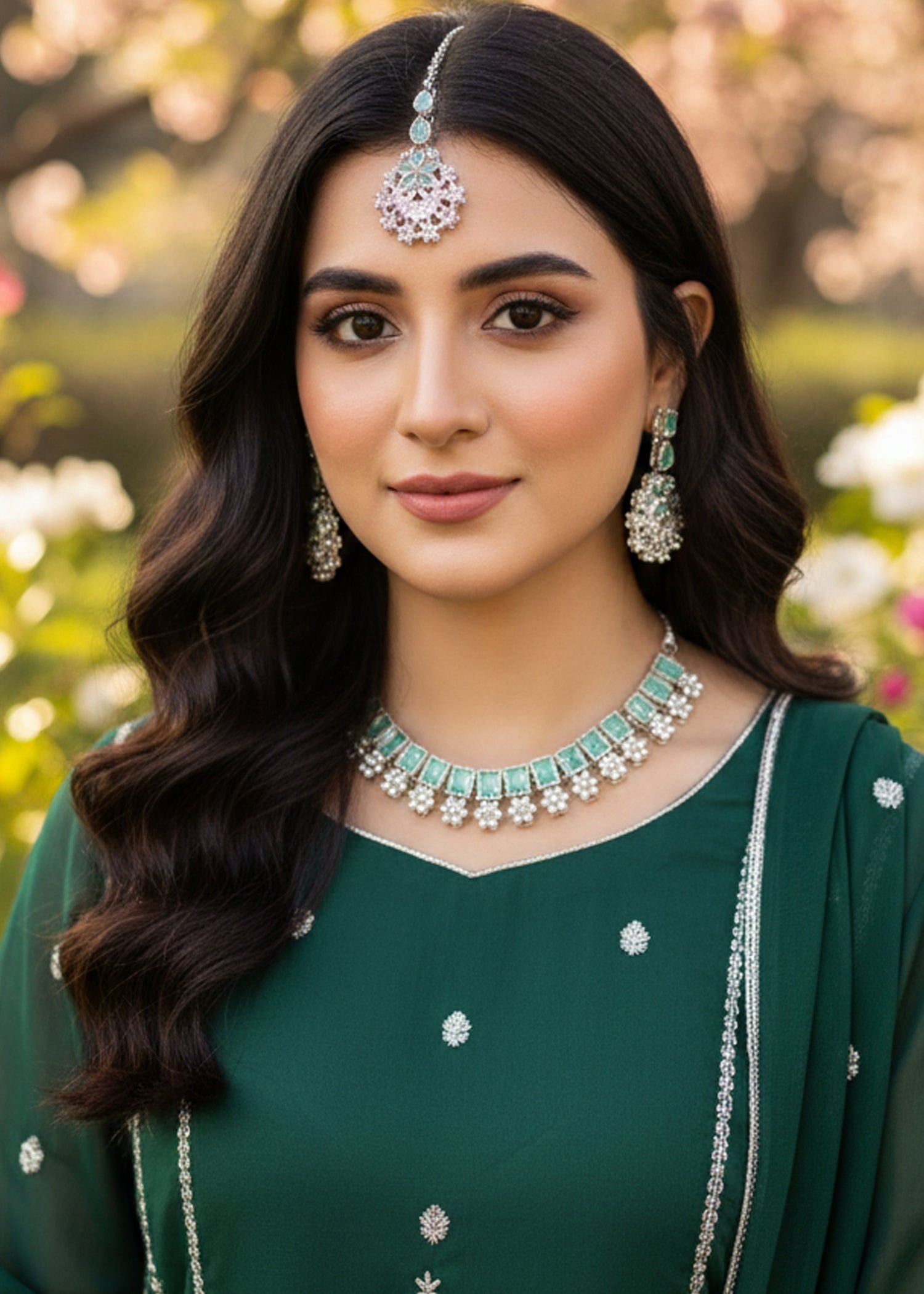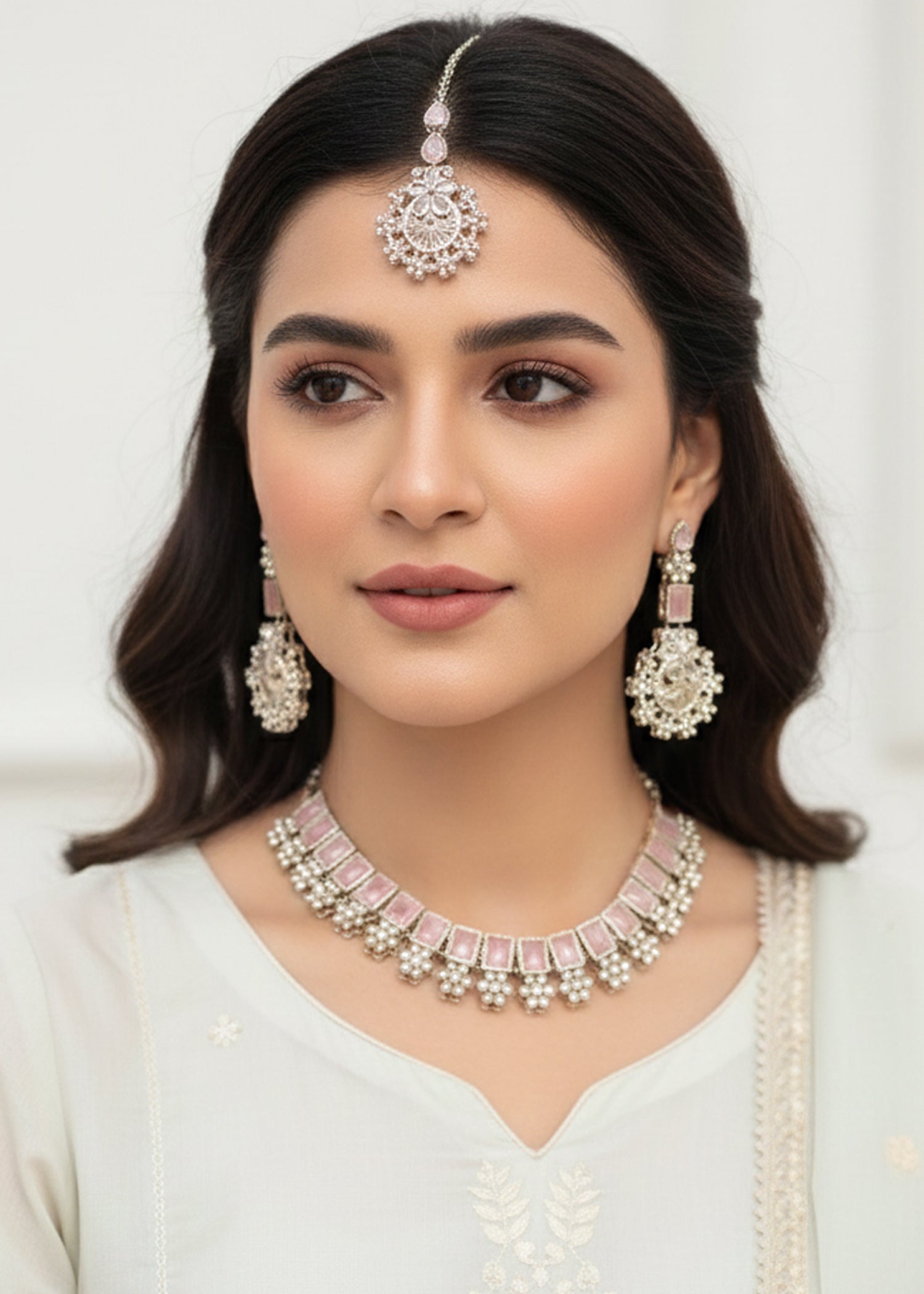 This choker set looks beautiful with sarees, lehengas, or any desi outfit.